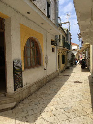 Mit dem Beiboot gehts rüber in den kleinen sehr netten Ort. Im Hafenhandbuch steht geschrieben, dass von Paxos ein der besten Olivenöle kommt. Das Londoner Kaufhaus Harrods verkaufe zeitweise ausschließlich Olivenöl von Paxos. Also gehe ich gleich mal Olivenöl shoppen. Das ideale Mitbringsel. (Beim Packen realisiere ich später, dass ich nur mit Handgepäck reise und das Öl nicht mitnehmen kann. Die ganzen Flaschen müssen also erst mal an Bord bleiben.)
