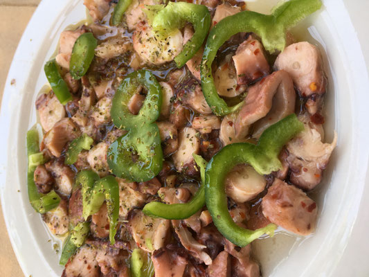 Nach getaner Arbeit fahre ich mit dem Beiboot nach Preveza City, dort gönne ich mr einen Octopussalat und einen Auberginensalat. Hervorragend!!!!!