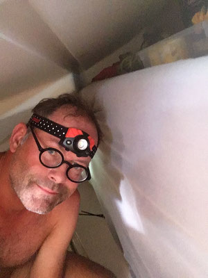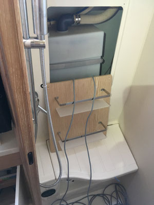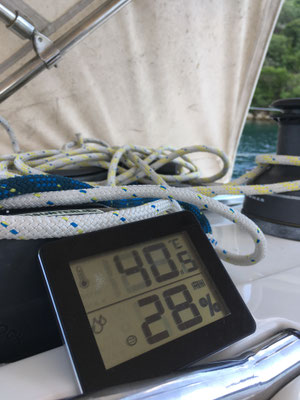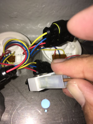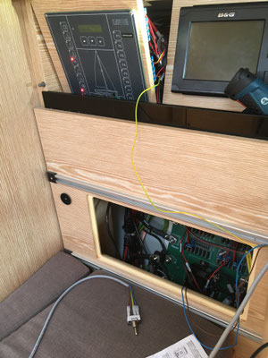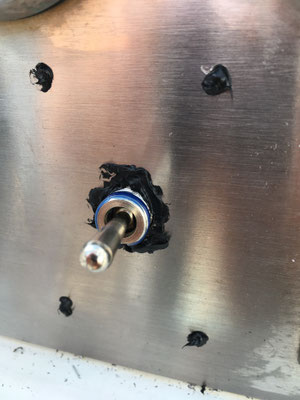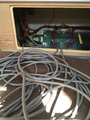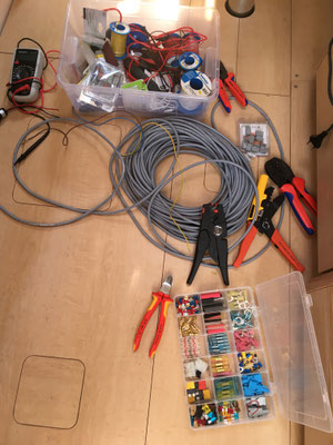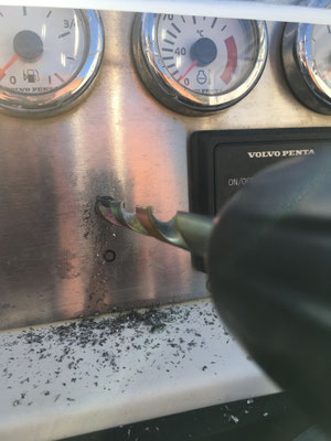 Bei knapp 40° (unter Deck noch mehr) habe ich fast 4 Stunden lang Schaltpläne studiert, Kabel vermessen, verlegt und abgezwickt, Löcher gebohrt, Gewinde geschnitten, Schalter wasserdicht eingeschraubt und am Ende: Es funktioniert!!!